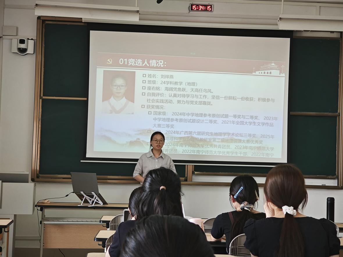 4月20日,williamhill中国官方网站学科教学(地理)专业硕士研究生党支部在武鸣校区2号教学楼315教室召开支部民主讨论会。会议由组织委员姜婕同志主持,支部全体党员和积极分子参加。