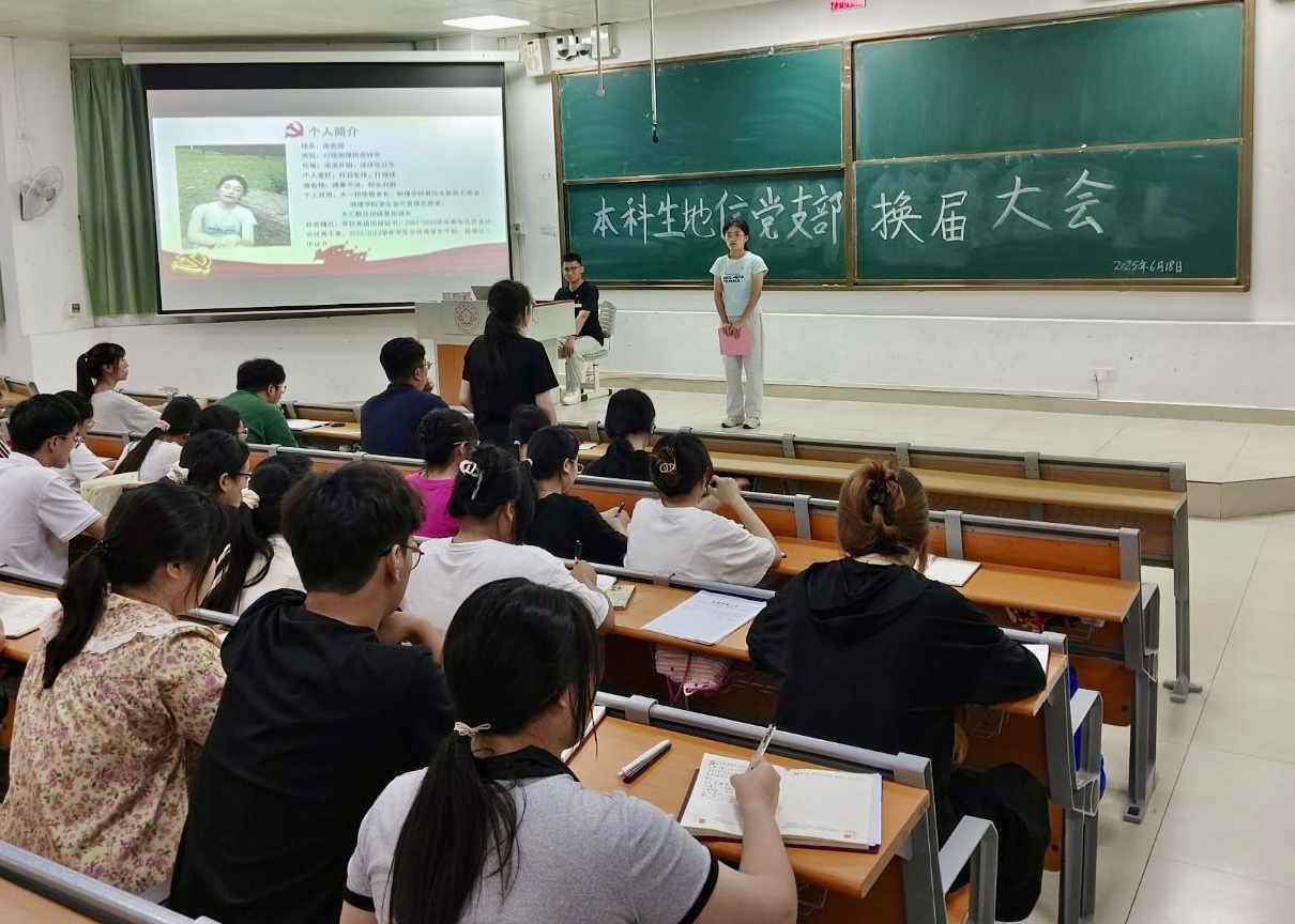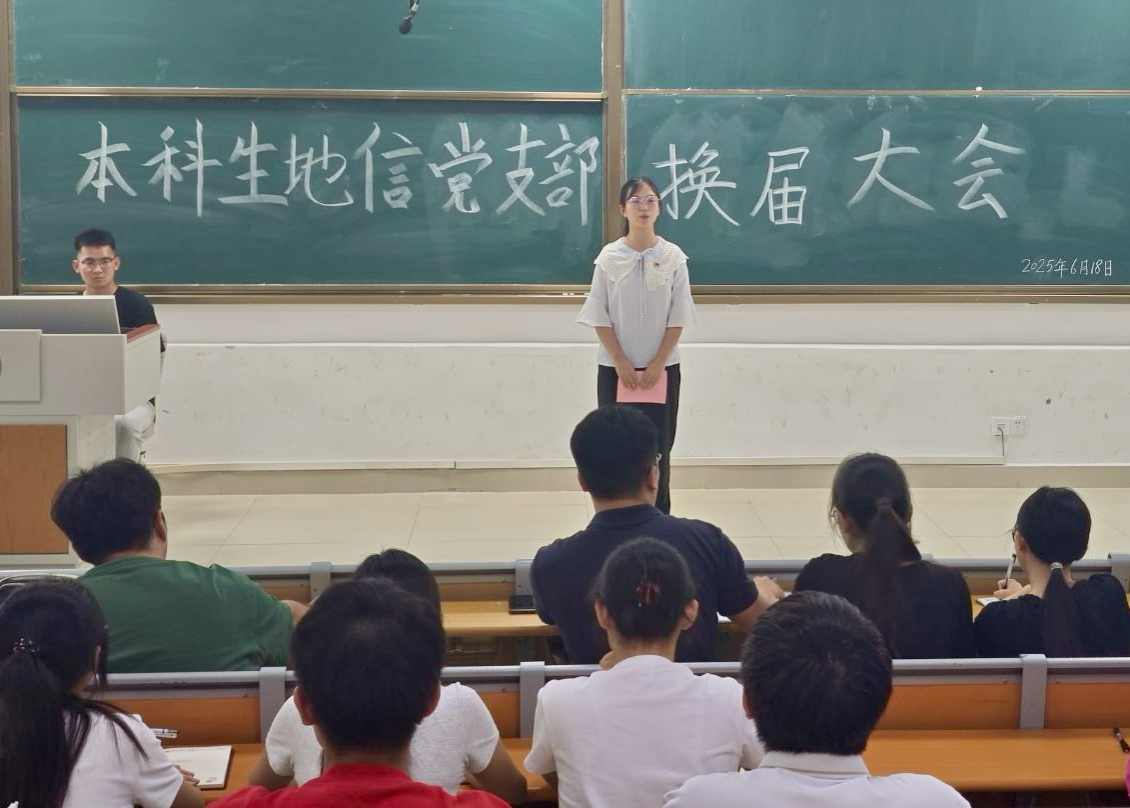 6月18日,williamhill中国官方网站本科生地信党支部在武鸣校区1号教学楼114教室召开支部委员换届大会。本次会议由党支部宣传委员方家鑫同志主持,支部全体党员参会。
