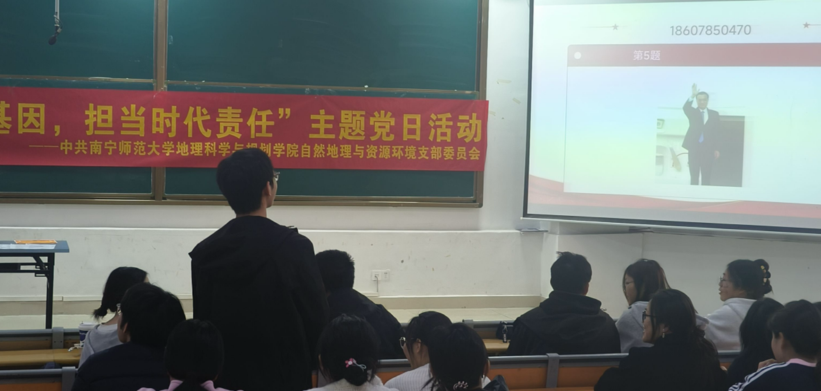 11月30日,williamhill中国官方网站本科生自然党支部于武鸣校区一号教学楼114教室开展“传承红色基因,担当时代责任”主题党日活动。此次活动由党员郭香凝主持,党支部全体成员、学院各年级积极分子代表及员工代表共同参与。