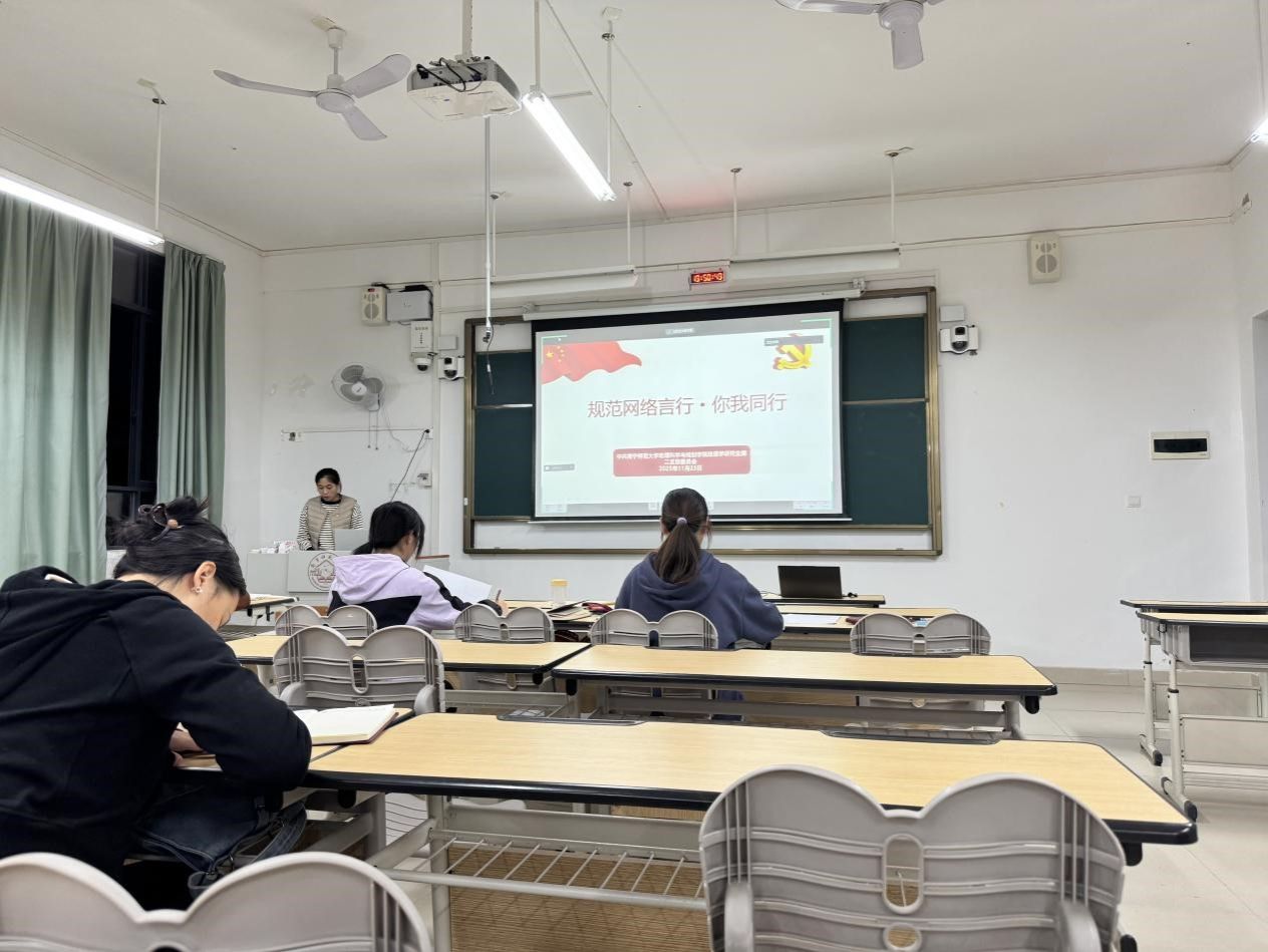 11月23日,williamhill中国官方网站地理学研究生第二党支部在武鸣校区1号教学楼220教室召开“规范网络言行・你我同行”主题教育活动。活动由党员张茜主持,党支部全体党员参加。