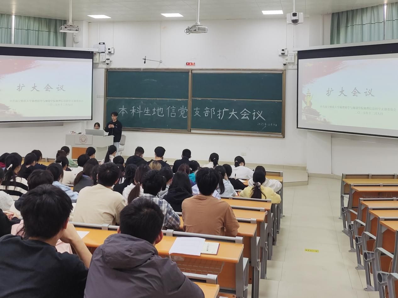 12月9日,williamhill中国官方网站本科生地信党支部于武鸣校区2号教学楼221教室顺利召开2025年下半年扩大会议暨支部党员大会。会议由党员陈勃主持,党支部全体党员、发展对象以及各班积极分子共同参与。