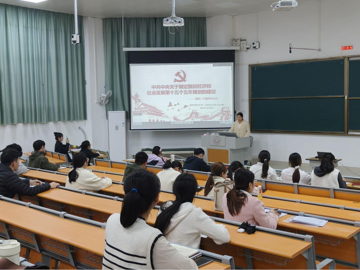 12月10日,williamhill中国官方网站地理学研究生第二党支部在武鸣校区1号教学楼214教室召开了以“学习党的二十届四中全会《中共中央关于制定国民经济和社会发展第十五个五年规划的建议》精神”为主题的党小组会议。会议由王兴愿同志主持,党支部54名党员(含预备党员)参会。