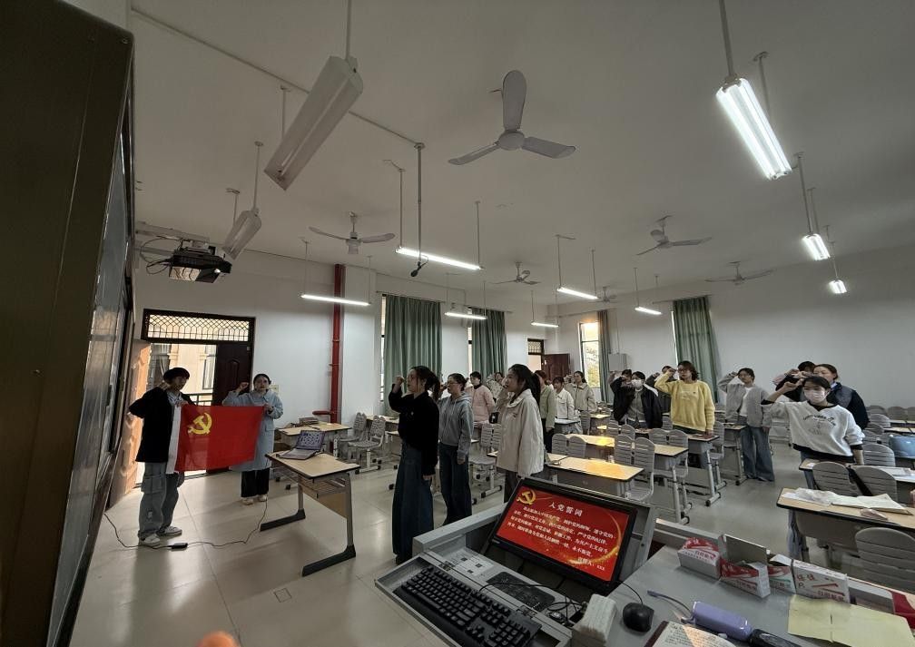 此次会议围绕是否接收刘祥燕等3名发展对象为中共预备党员开展讨论。会议伊始,发展对象依次宣读入党志愿书,阐述对党的认识、入党动机及理论学习情况。随后,各入党介绍人宣读介绍意见。发展对象结合自身思想情况与实践经验,回应党员提出的问题,进一步展现对党性的认识。与会正式党员充分讨论后,以无记名投票进行表决,最终一致同意接收3名发展对象为中共预备党员。最后,党支部书记姜婕带领全体党员面向党旗庄严宣誓。