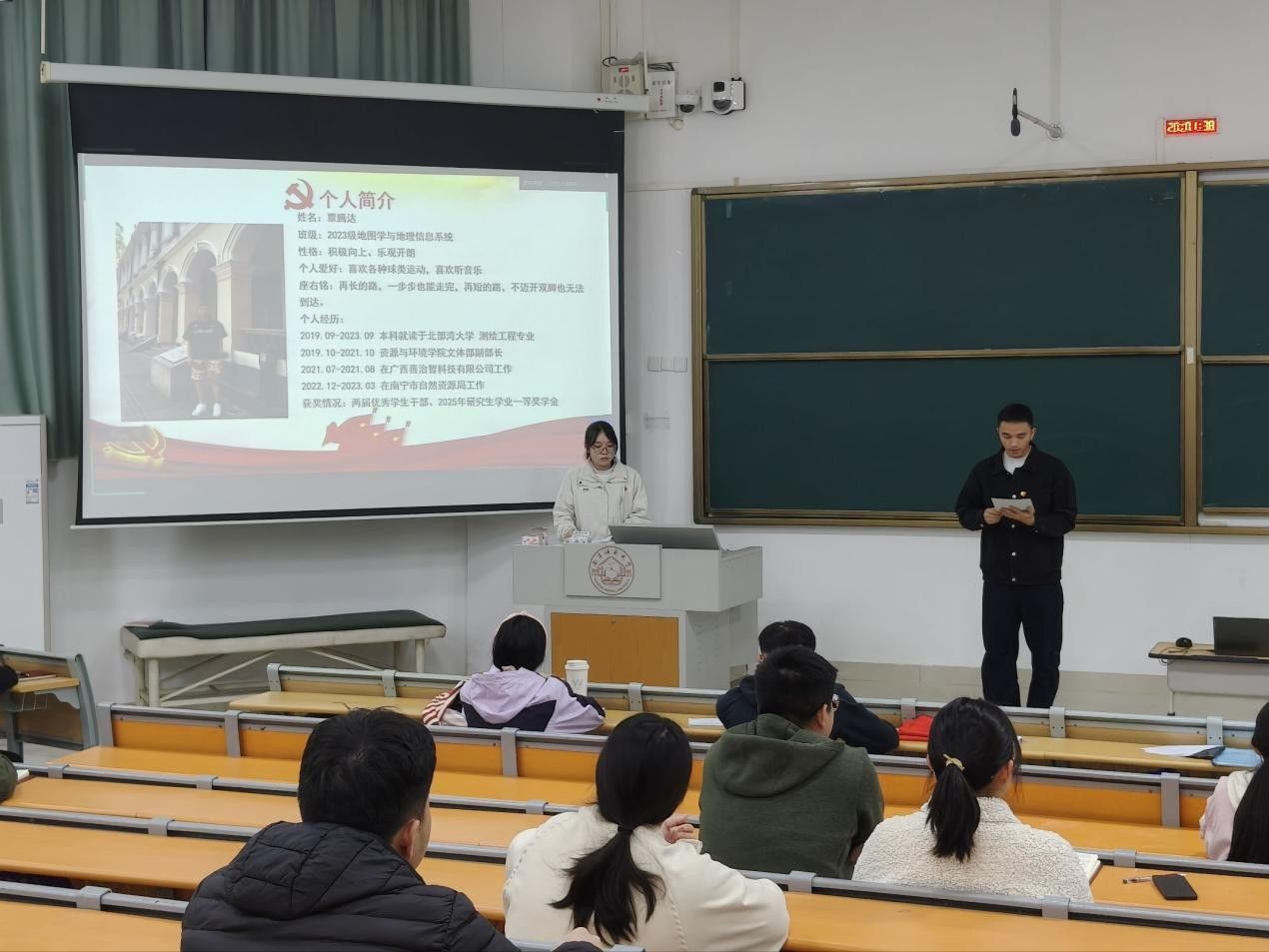12月22日,williamhill中国官方网站地理学研究生第二党支部在武鸣校区1号教学楼214教室顺利召开预备党员转正会议。此次会议由党支部副书记覃莫子慧主持,党支部全体成员参会。