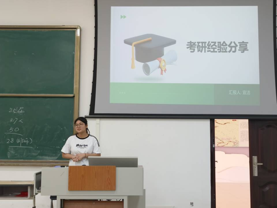 会上,5位成功上岸的学长学姐结合自身考研经历,分别围绕院校和专业选择、备考学习规划、备考心态、复试准备等方面进行了分享和指导,并推荐了相关的备考资料和视频课程供同学们参考,就同学们在考研过程中可能遇到的问题进行了耐心细致的解答,建议同学们结合自身情况选择适合自己的院校、制定学习计划。